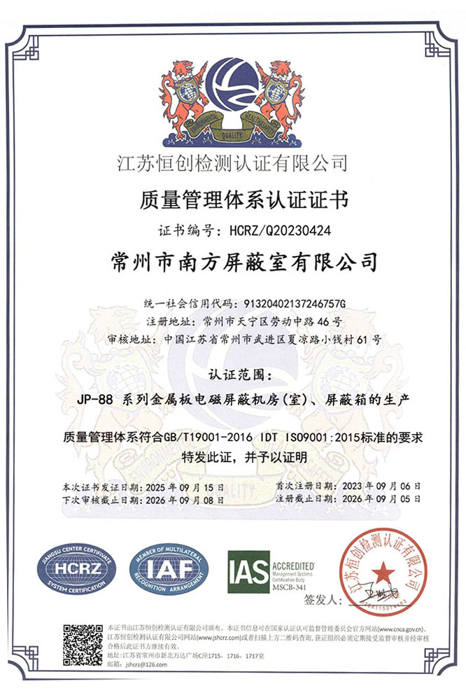质量管理体系认证证书